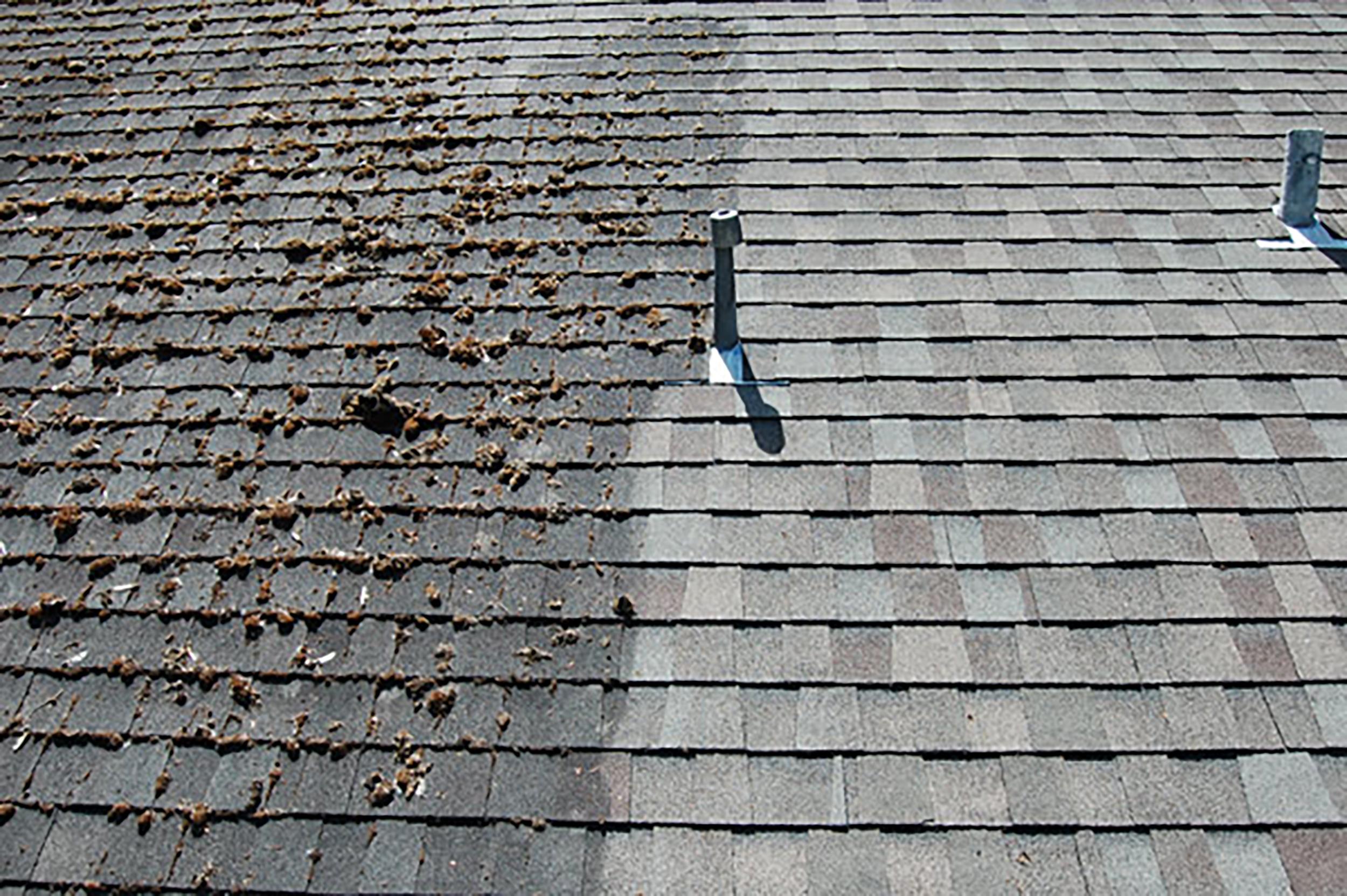 Roof shingles, siding, windows, and painted surfaces are cleaned with low pressure and gentle solutions.
